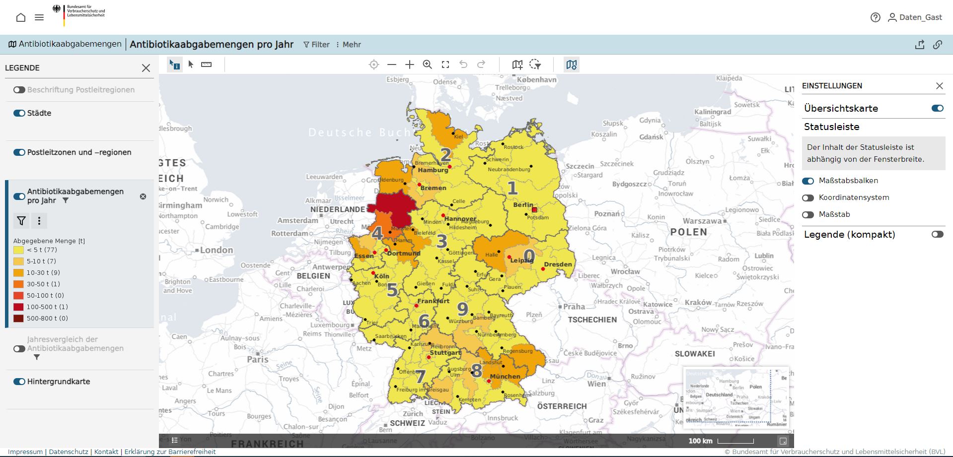 Auf dem BVL-Datenportal stellt das Bundesamt für Verbraucherschutz und Lebensmittelsicherheit Datenmaterial aus dem behördlichen Bereich des gesundheitlichen Verbraucherschutzes bereit, das dem BVL regelmäßig gemeldet wird; entweder im Rahmen der föderalen Zusammenarbeit zwischen Bund und Ländern oder aufgrund gesetzlicher Pflichten.